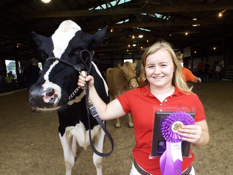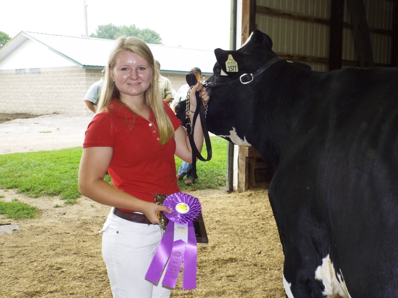 On Wednesday morning at the Logan County Fair, the Irwin sisters dominated the 4-H dairy show with Sarah winning Grand Champion Heifer and Dawn winning the Grand Champion Cow. Sarah's plaque was sponsored by Phil Willson, Atlanta Ag Center and Dawn's plaque was given by Prairie Farms. In the Senior  Showmanship category, the trophy was given by Irwindale Farms, with Sarah Irwin being the winner. Also finishing well in showmanship was Walker Allen. Allen has been showing dairy for three years. He noted that his family raises beef cattle, but he has chosen to raise and show dairy. Also showing dairy this year, and taking home several blue ribbons were Laura Rankin and Charlotte Toohill.