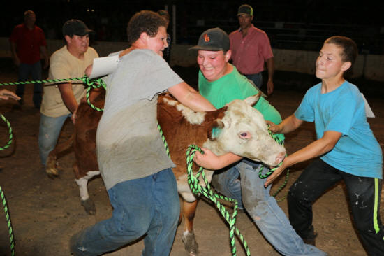 Wednesday night in front of the grandstand was 4-H night at the Logan County Fair. The evening was highlighted by the 4-H scrambles, along with the judging of last year's Scramble calves, and recognition of the 4-H scholarship winners.