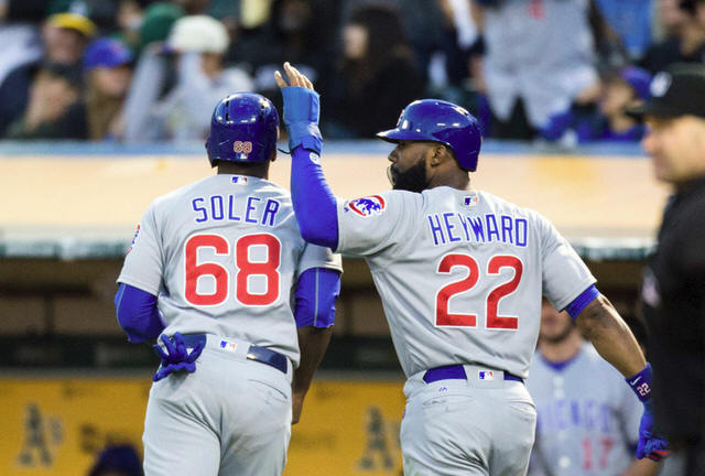 Cubs right fielder Jason Heyward (22) and designated hitter