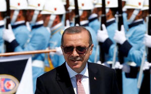 Turkish President Tayyip Erdogan reviews a guard of honour during a