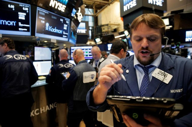 Traders work on the floor of the New York Stock Exchange (NYSE) in