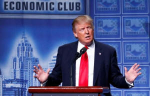Republican U.S. presidential nominee Donald Trump speaks to the