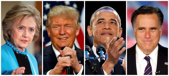 Donald Trump in 2016 and U.S. President Barack Obama, and Republican