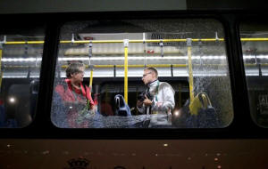 between Olympic venues on Tuesday, witnesses said. No one was seriously
