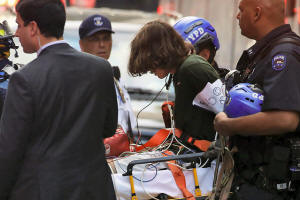 ambulance after he climbed Trump Tower in the Manhattan borough of