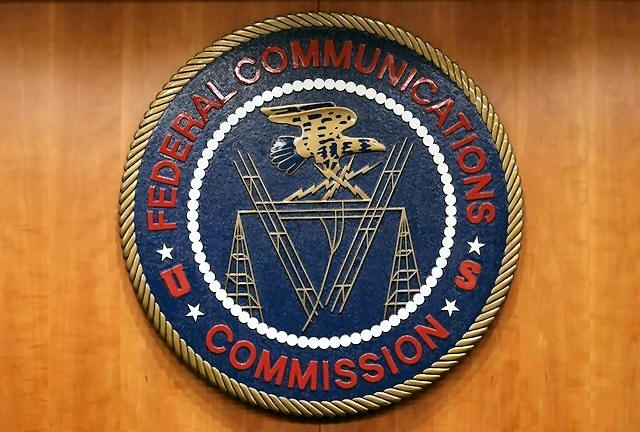The Federal Communications Commission (FCC) logo is seen before the