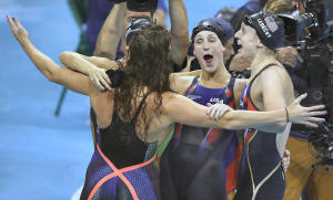 anchoring the U.S. women to victory in the 4x200 metres freestyle
