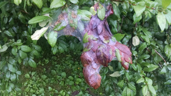 The way insects live also dictates some of the control do’s and don’ts. Fall webworms live inside a “web” all the time. They actually expand the webbing as they need to have more leaves to eat. They are usually worst on fruit and nut trees. You can even clip the nest (and the branch it is around) off the tree and burn it. I guess this tells you that defoliation caused by the insect isn’t that great of a threat to the tree or you wouldn’t cut the branch area off. If you want to spray fall webworms, you need to get the spray through the web. This may be a little harder than you think. If you don’t have enough pressure, the spray just runs off the webbing.