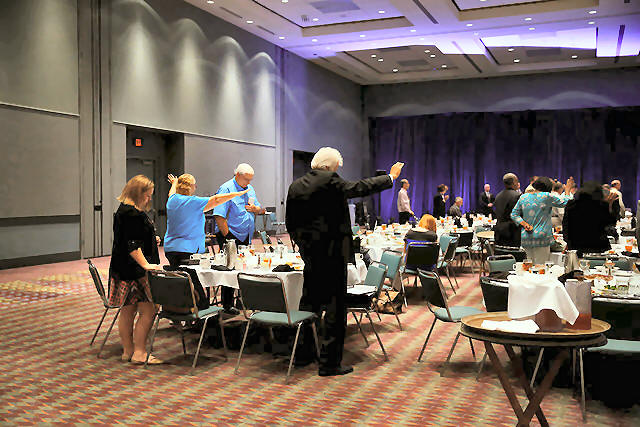 Attendees pray after Republican U.S. presidential nominee Donald