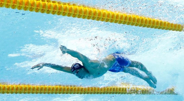 become the first swimmer to win the same event at four consecutive