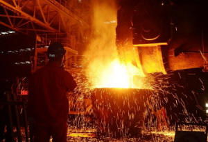 An employee works at a steel factory in Dalian, Liaoning Province,