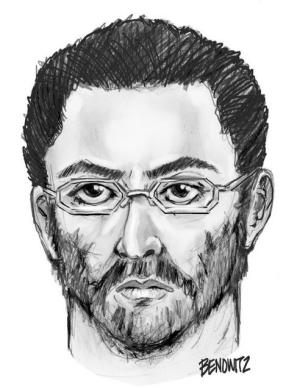 Police released a sketch of a male suspect with dark hair, a beard
