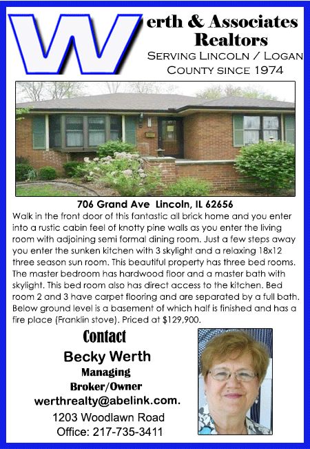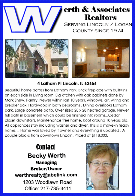 All real estate advertised in the Lincoln Daily News is subject to the Fair Housing Act for 1968 which makes it illegal to advertised "any preference, limitation, or discrimination based on race, color, religion, sex or national origin, or intention to make special preference, limitations, or discrimination."