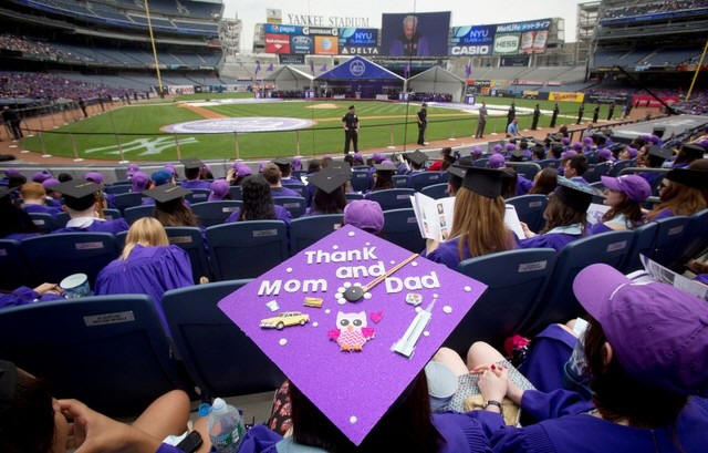 New York University sits in the stands of Yankee Stadium, while