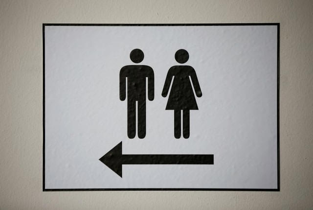 A sign points at the WC restrooms in Troisdorf near Bonn,