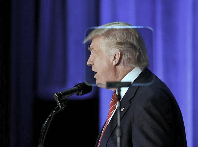 Reading from a teleprompter, he said Clinton does not have the judgment