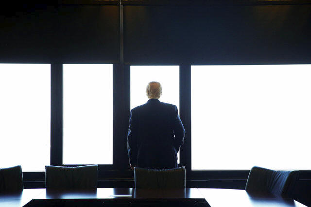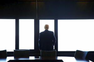 Republican U.S. presidential nominee Donald Trump looks out at Lake
