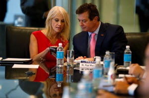 Campaign Manager Kellyanne Conway (L) and Paul Manafort, staff of