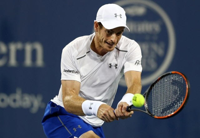 Andy Murray (GBR) returns a shot against Kevin Anderson (USA) on day