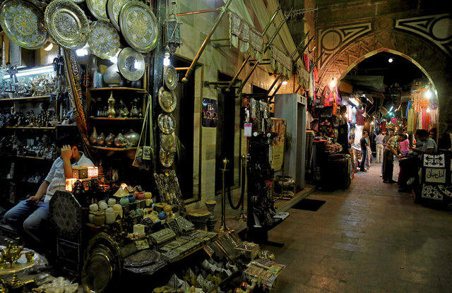 Vendors wait for customers in a popular tourist area named "Khan el-Khalili"