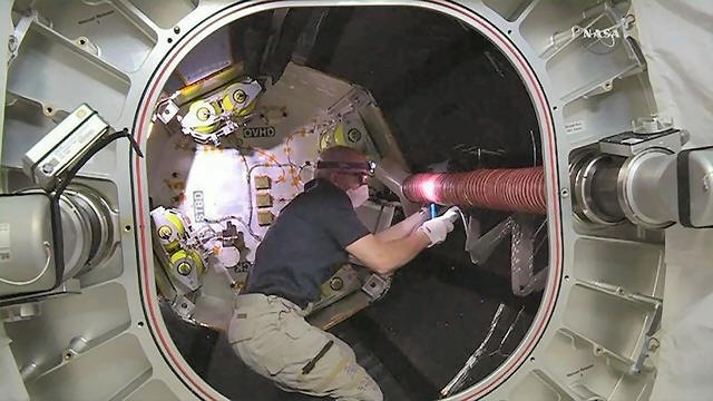 During Friday's spacewalk, Williams and Rubins attached an adapter onto