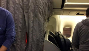 business class and hidden behind the curtain.
