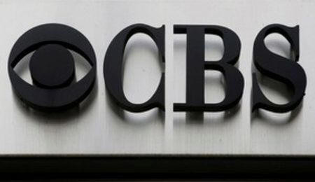 logo are seen outside the CBS Broadcast Center on West 57th St. in