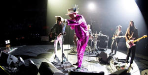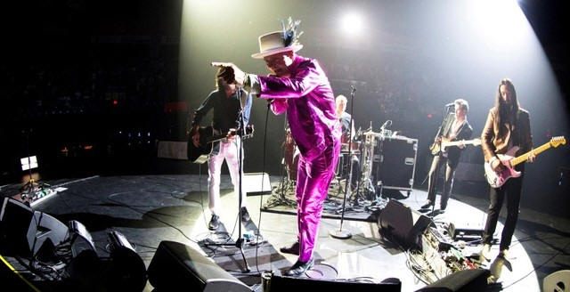 the tour, clad in custom-made bright metallic suits.