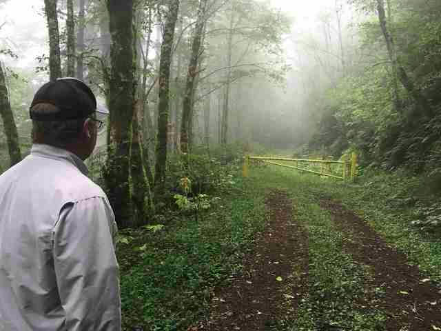 Trespassing" sign deep in Oregon's Elliott State Forest, he bristles at