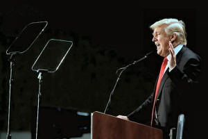 Republican presidential nominee Donald Trump speaks at a campaign