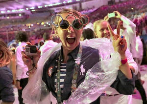 upper part of the stadium, and rain drenched performers and athletes