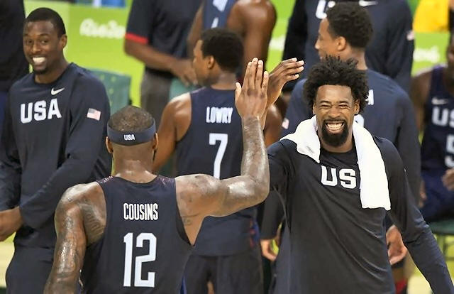 Deandre Jordan (USA) of the USA and Demarcus Cousins (USA) of the