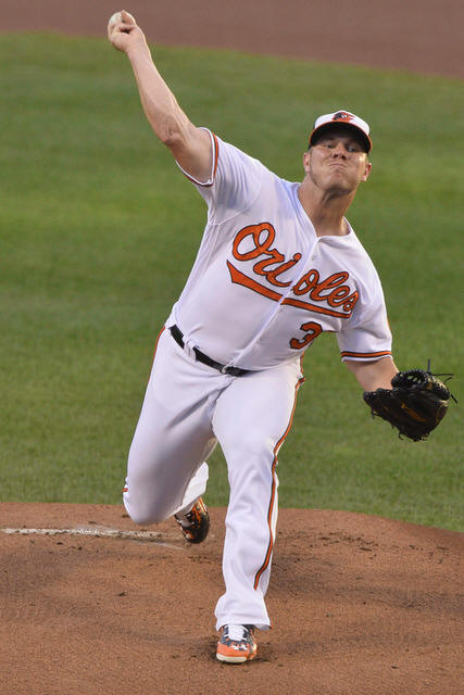 Orioles relief pitcher Dylan Bundy (37) pitches during the first
