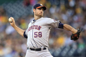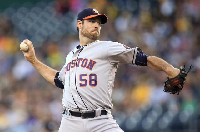 Astros starting pitcher Doug Fister (58) delivers a pitch against