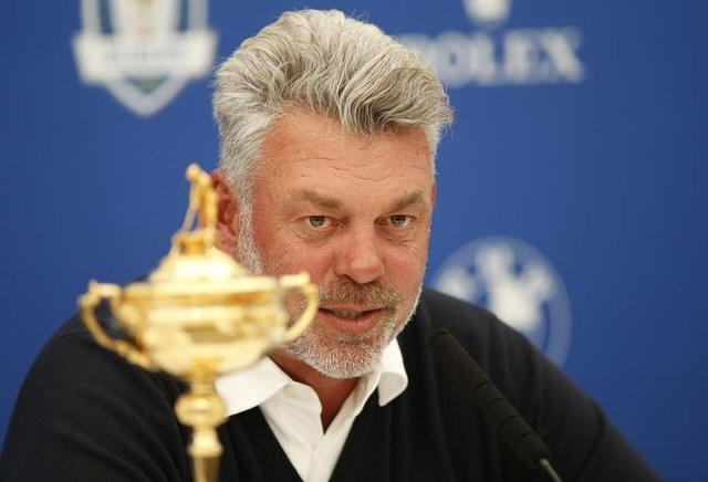Europe team captain Darren Clarke talks at a press conference as he