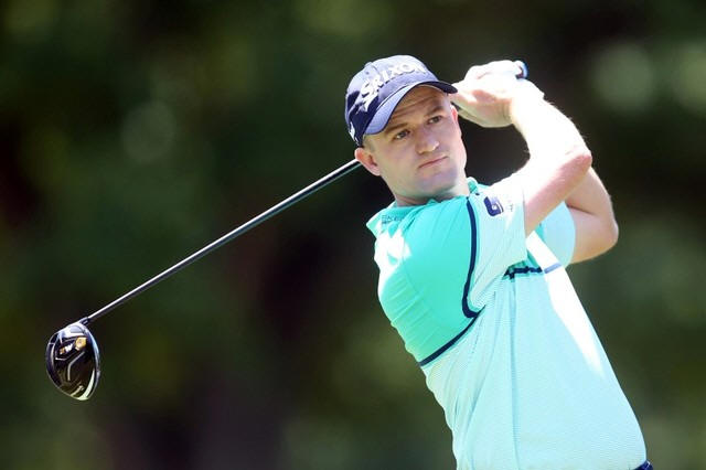Russell Knox of Scotland hits a tee shot on the third hole at