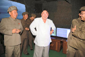 North Korean leader Kim Jong Un is pictured during a test-fire of
