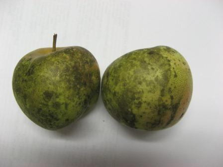 the same fruit. The sooty blotch fungus causes surface
