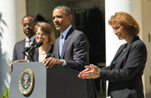 (R), Georgetown law professor Cornelia Pillard (behind Obama) and