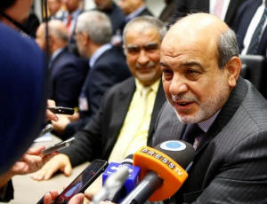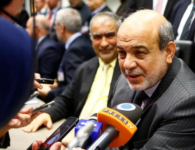 Iraqi Deputy Oil Minister Fayadh al-Nema (R) talks to journalists