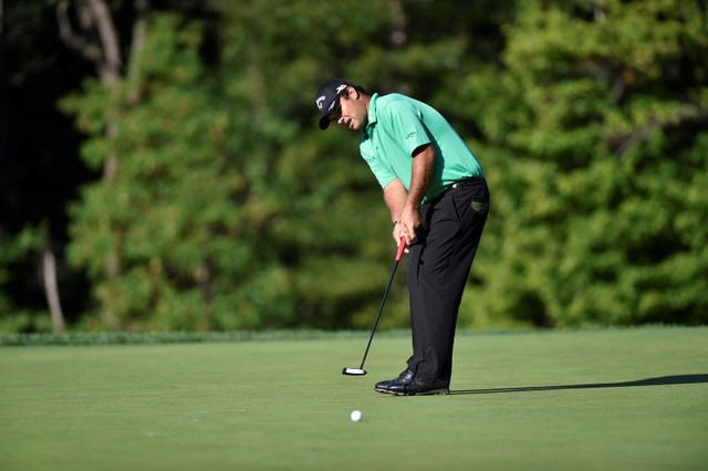 Patrick Reed putts on the 10th green during the first round of The
