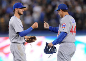 Cubs third baseman Kris Bryant (17) and first baseman Anthony Rizzo