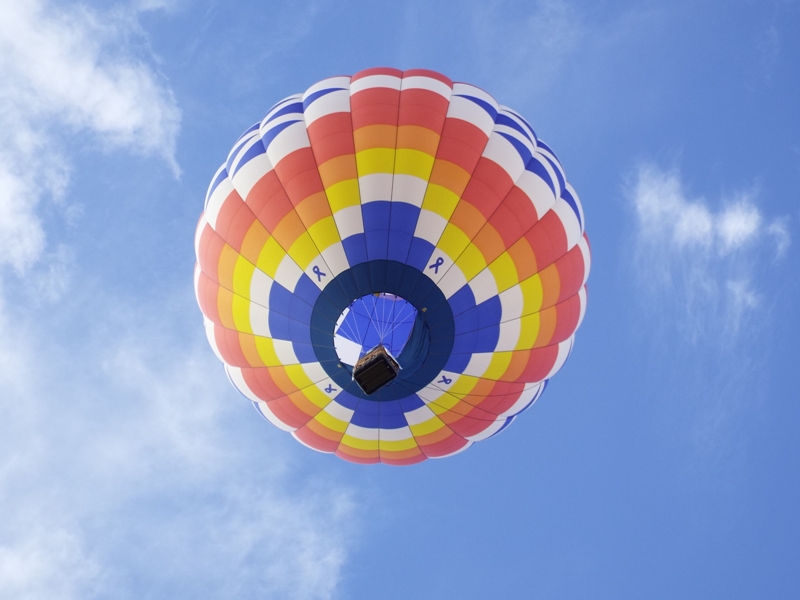 A straight up view of Mom's Toy 2 piloted by Deb Geist on Saturday evening at the Balloon Festival.