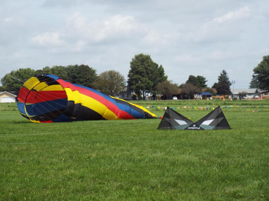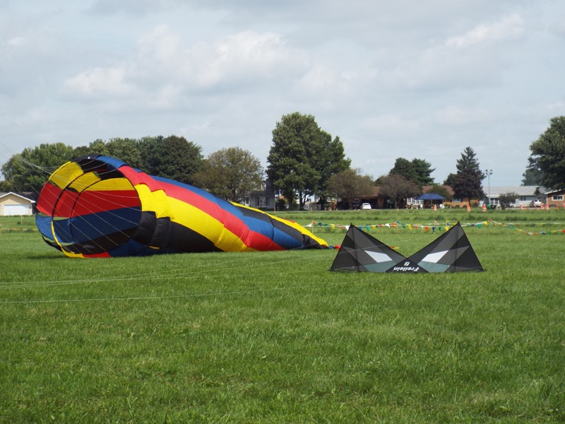 Two of the fabulous kites that filled the skies at the Logan County Airport on Saturday afternoon during the Lincoln Balloon Festival, courtesy of Chicago Kites. The kite club entertained guests throughout the afternoon with tricks and dancing kites.