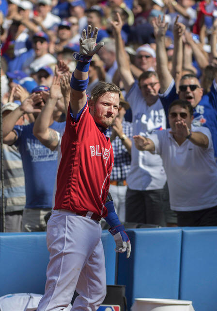 Blue Jays third baseman Josh Donaldson (20) acknowledges the crowd