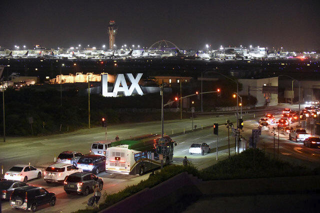 Traffic congestion is seen near the LAX sign, as terminals at