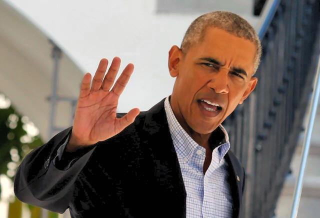 Obama waves as he walks out from the White House before his