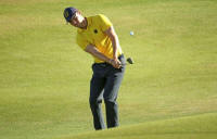 Martin Kaymer (GER) of Germany chips on to the 18th green during