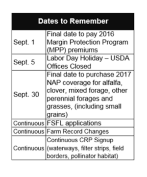 [August 29, 2016]    Update Your Records today - FSA is cleaning up our producer record database. If you have any unreported changes of address or zip code or an incorrect name or business name on file they need to be reported to our office.
