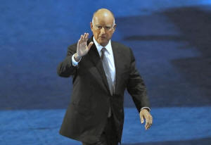 California Governor Jerry Brown leaves the stage at the Democratic